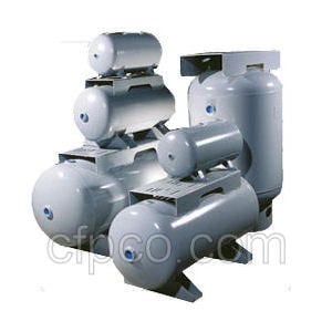 CFP offers a wide range of vertical air receivers in standard sizes from 30 to 5000 gallons with pressure ratings from full vacuum to over 3000 PSI. Each tank is designed, fabricated and certified in accordance with ASME Code and registered with the National Board of Boiler and Pressure Vessel Inspectors. Typical models are manufactured from carbon steel with a primer coated exterior for corrosion protection, however galvanizing and internal/external coatings are available. Custom designs, special materials, larger sizes, and a range of agency certifications can be quoted upon request.